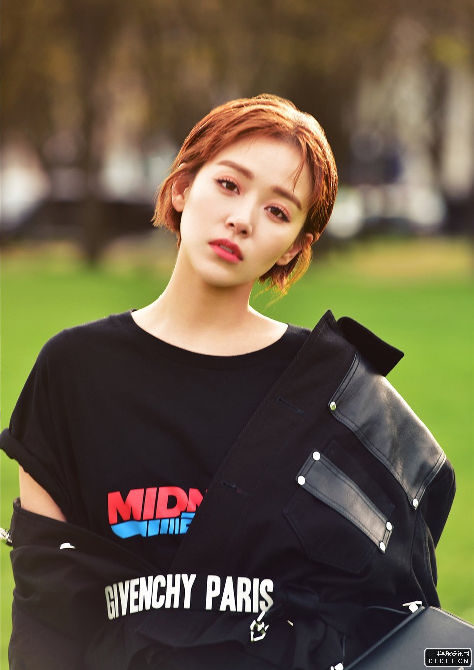 闞清子黑色長(cháng)T恤街拍 游走在巴黎街頭公園中