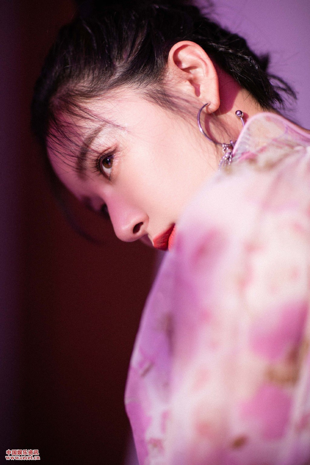 闞清子粉衫皮短褲大片 高扎丸子頭酷帥有型