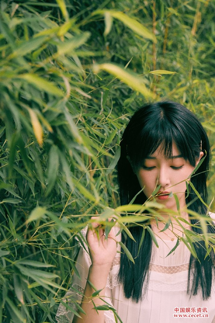 闞清子白色連體裙美照 竹林背景盡顯文藝清新