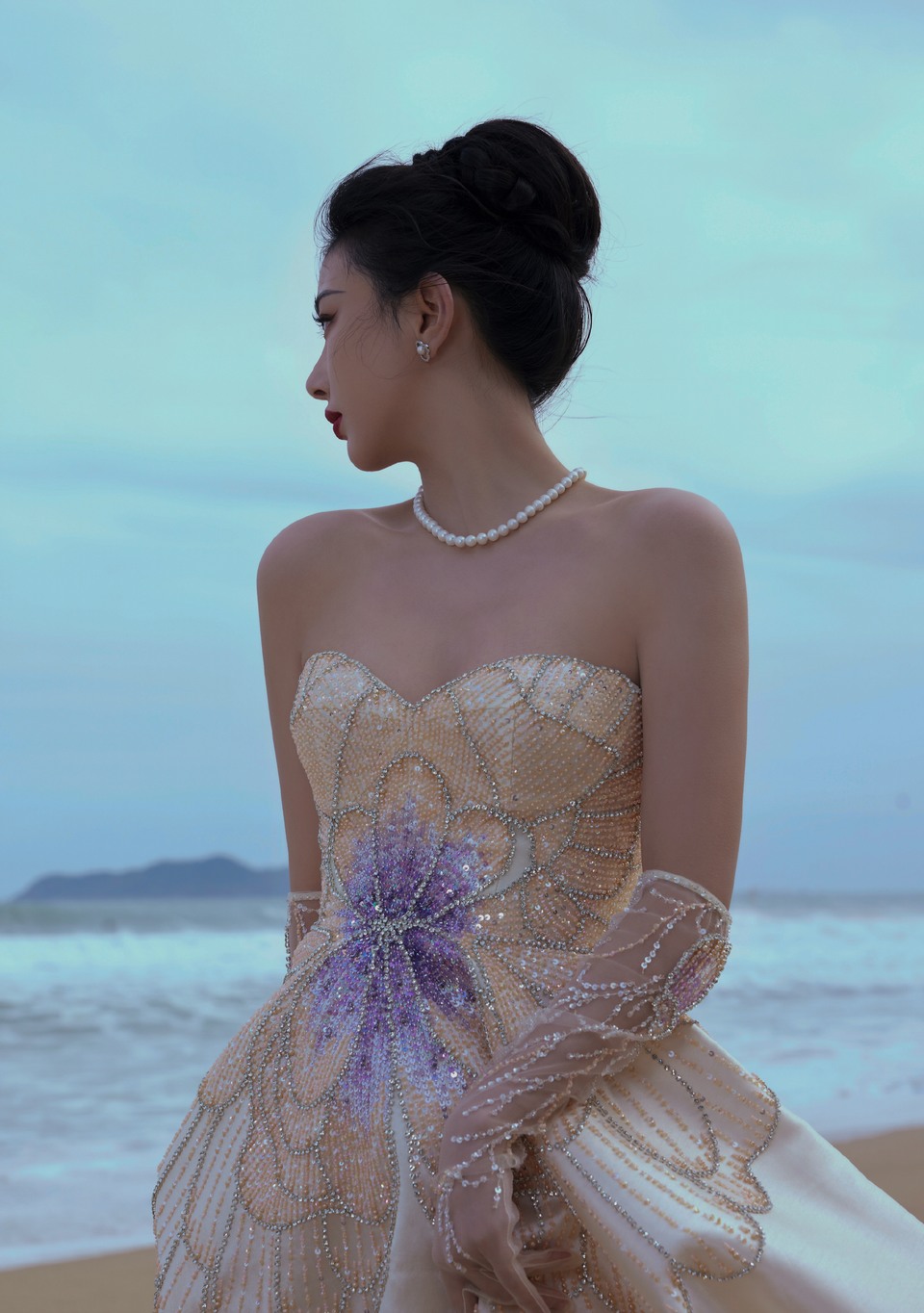 孔雪兒低胸白裙古典溫婉 靜享海邊輕松一刻