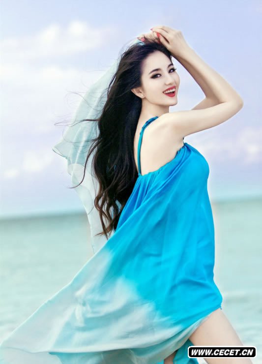 藍燕馬爾代夫寫(xiě)真 藍白漸色紗裙盡顯仙范兒