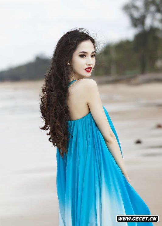 藍燕馬爾代夫寫(xiě)真 藍白漸色紗裙盡顯仙范兒
