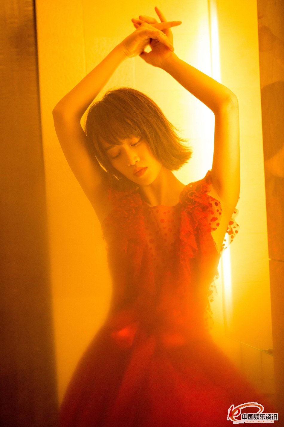 藍盈瑩深V長(cháng)裙復古圖 亮眼奪目的猩紅色吸睛