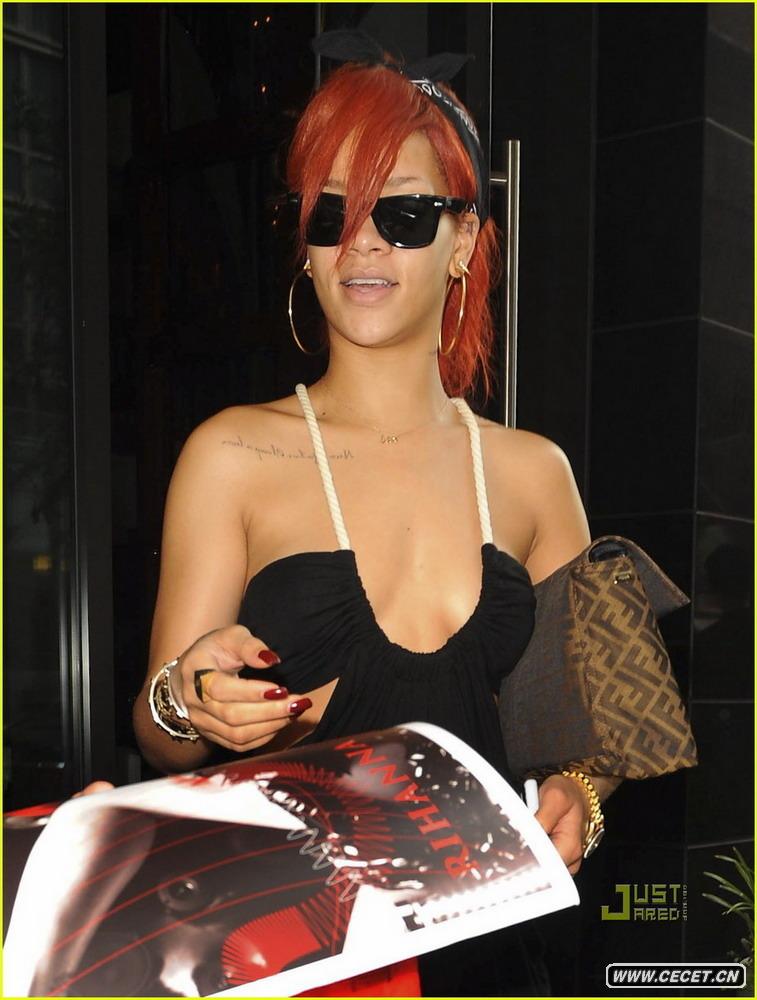 蕾哈娜真空穿長(cháng)裙出街 性感美胸若隱若現