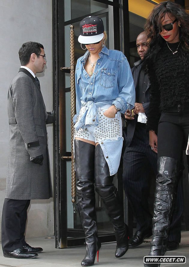 蕾哈娜現身倫敦 一身牛仔裝扮搭配高筒靴
