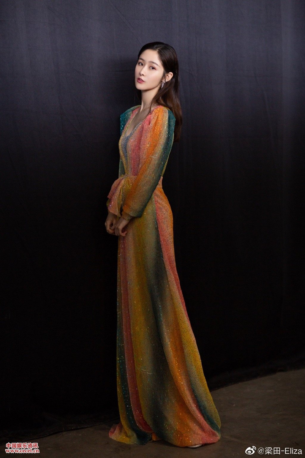梁田彩色柔軟長(cháng)裙美照 展露優(yōu)雅恬靜的樣子