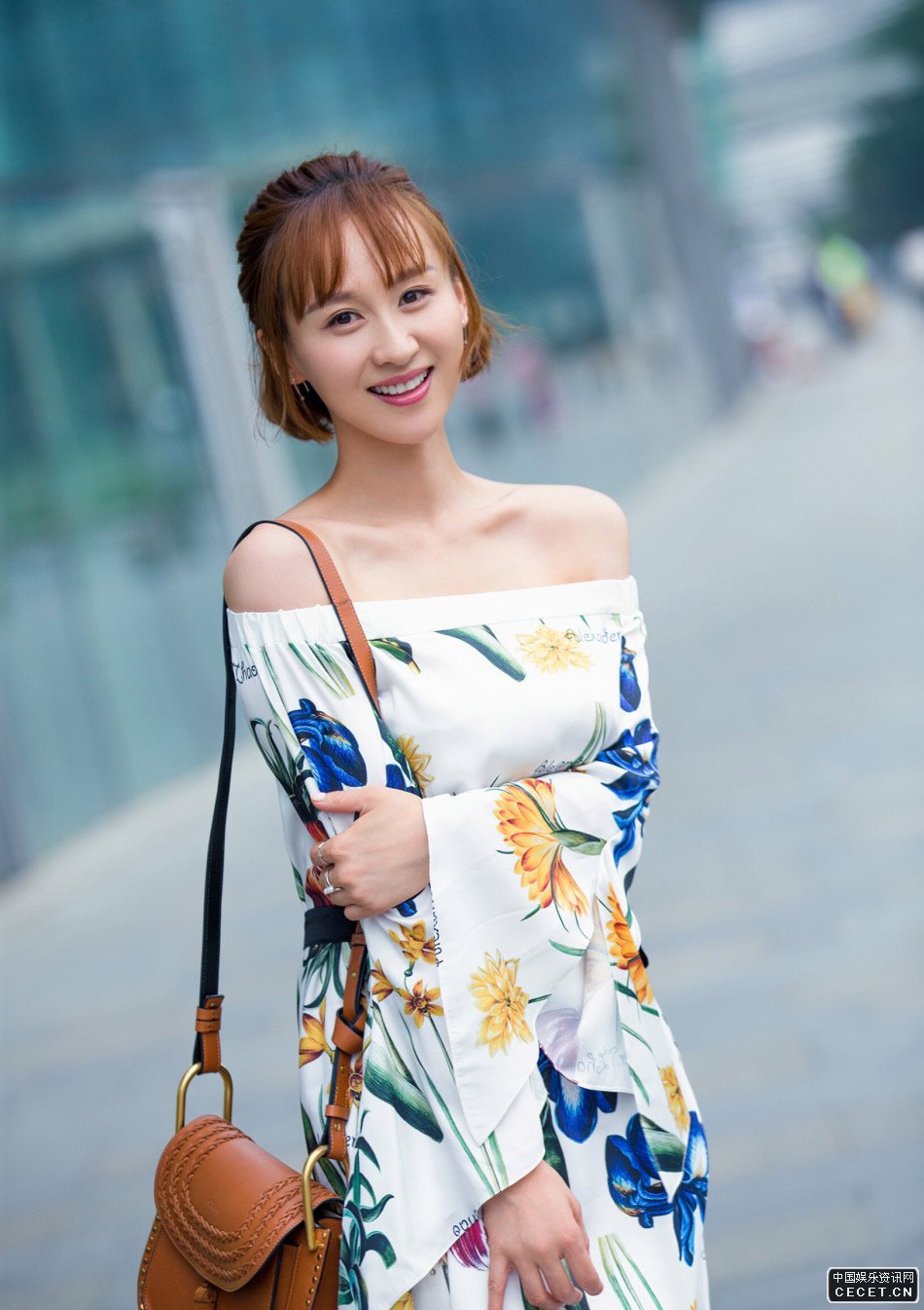 練束梅印花連身裙街拍 纖細修長(cháng)的性感鎖骨