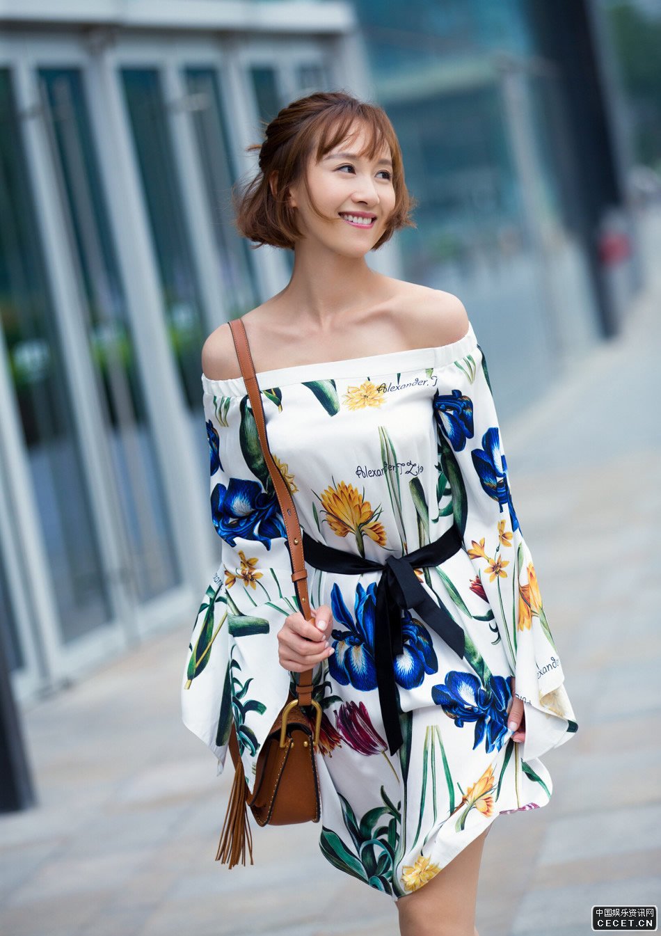 練束梅印花連身裙街拍 纖細修長(cháng)的性感鎖骨