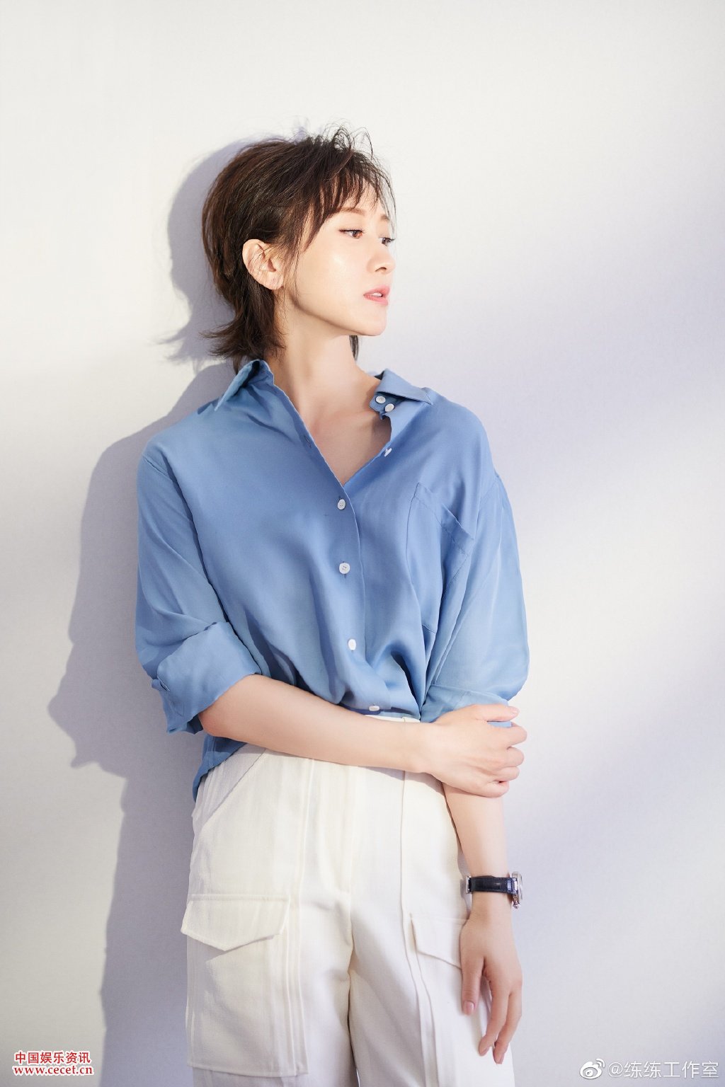 練束梅藍衫白褲寫(xiě)真 光潤玉顏盡顯清新氣質(zhì)