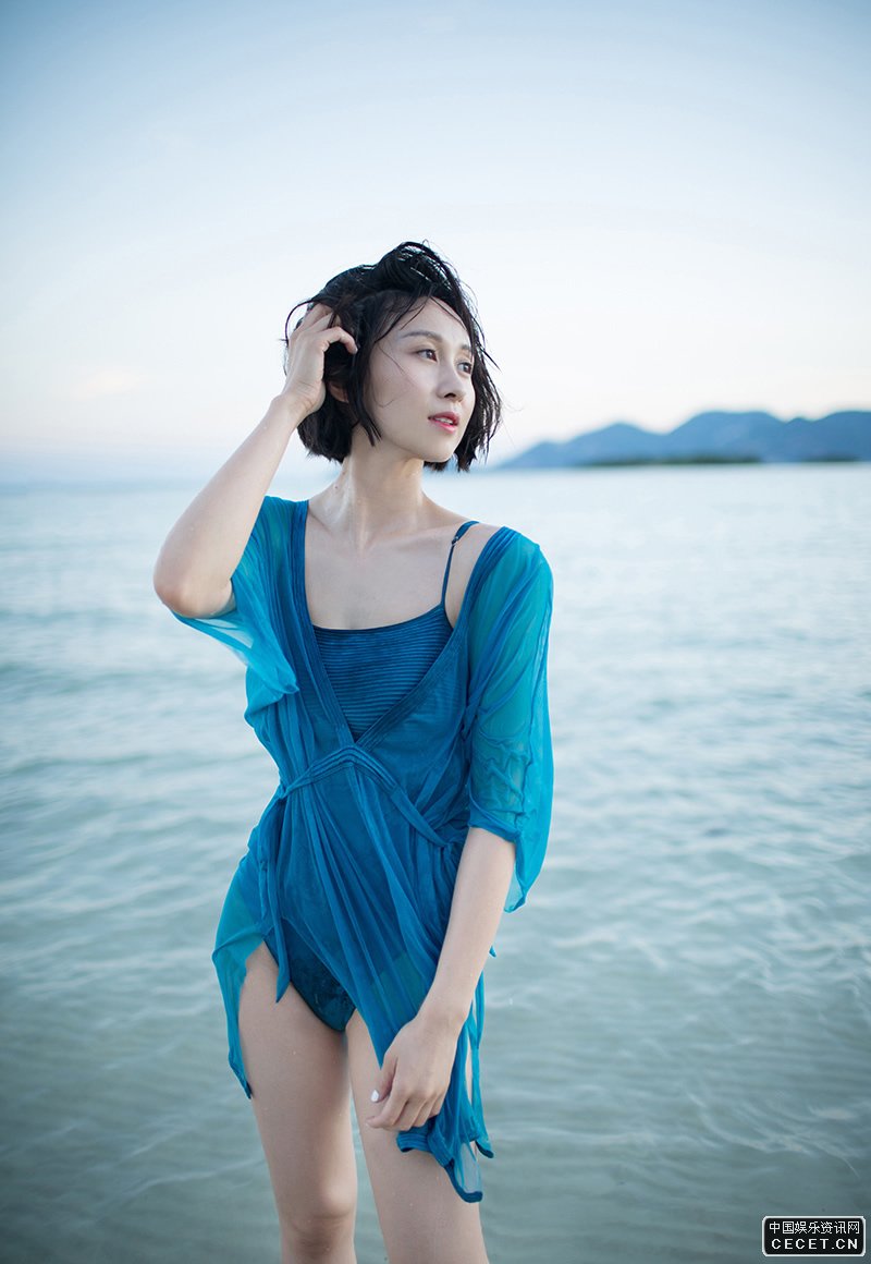 練束梅海邊寫(xiě)真大片 泳裝藍完美身材的火辣