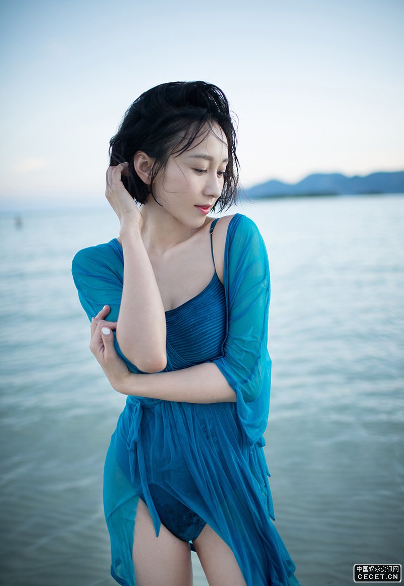 練束梅海邊寫(xiě)真大片 泳裝藍完美身材的火辣