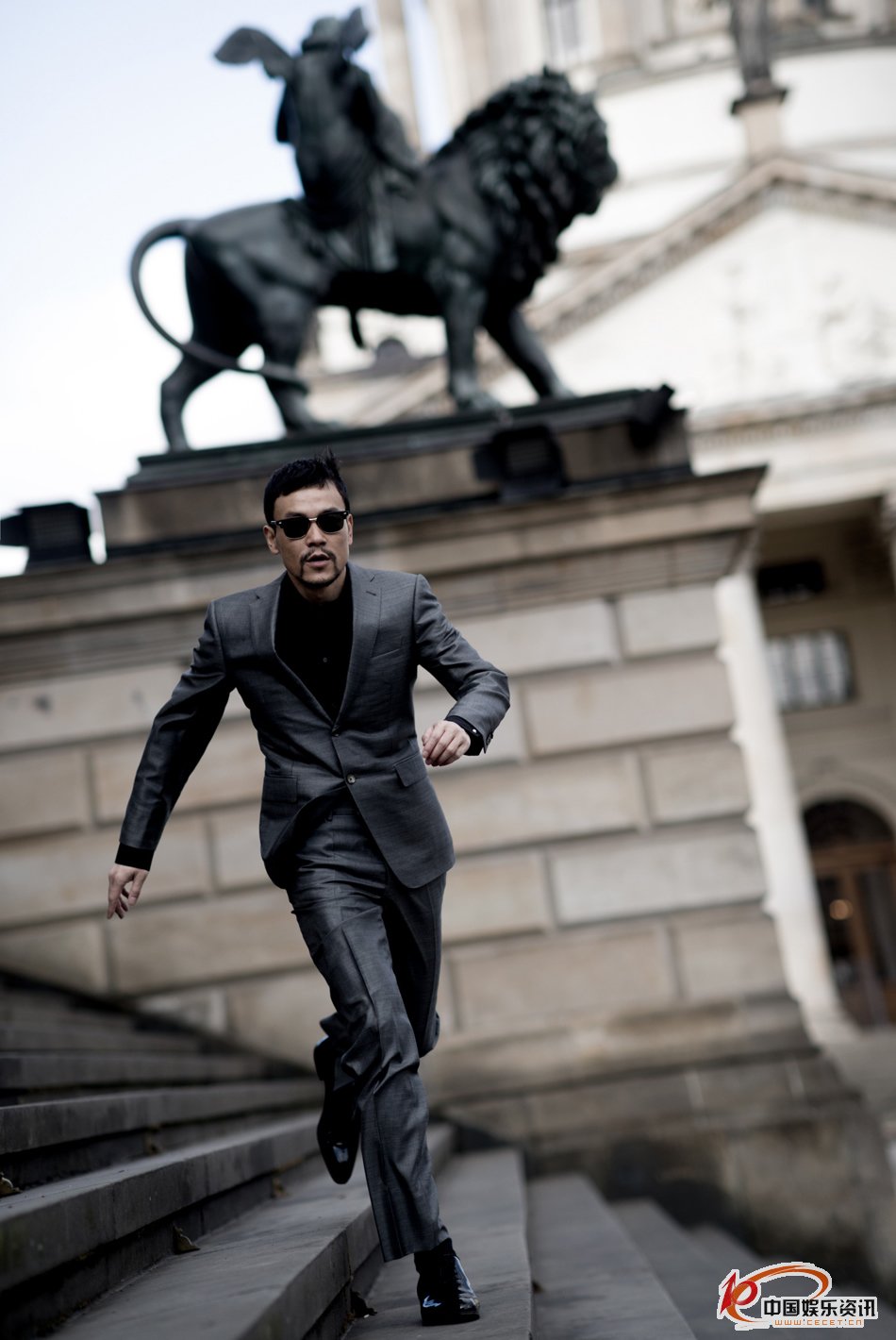 廖凡銀灰西裝柏林拍攝 炫酷墨鏡巨星范十足