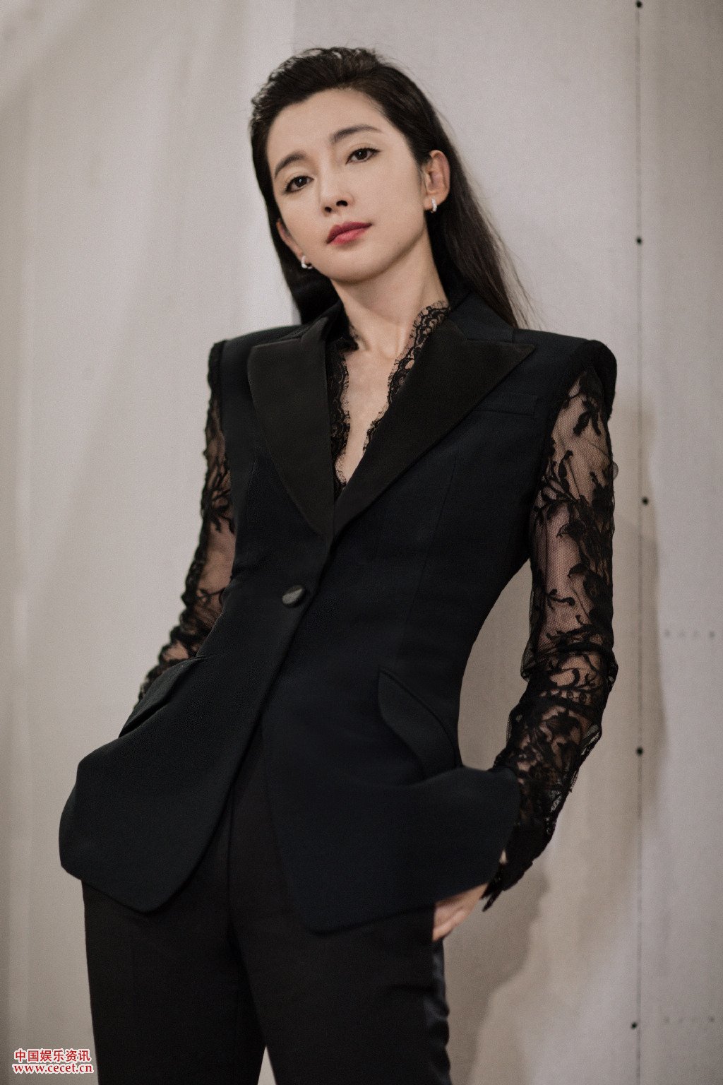 李冰冰黑色西服氣場(chǎng)slay 蕾絲設計增添浪漫感