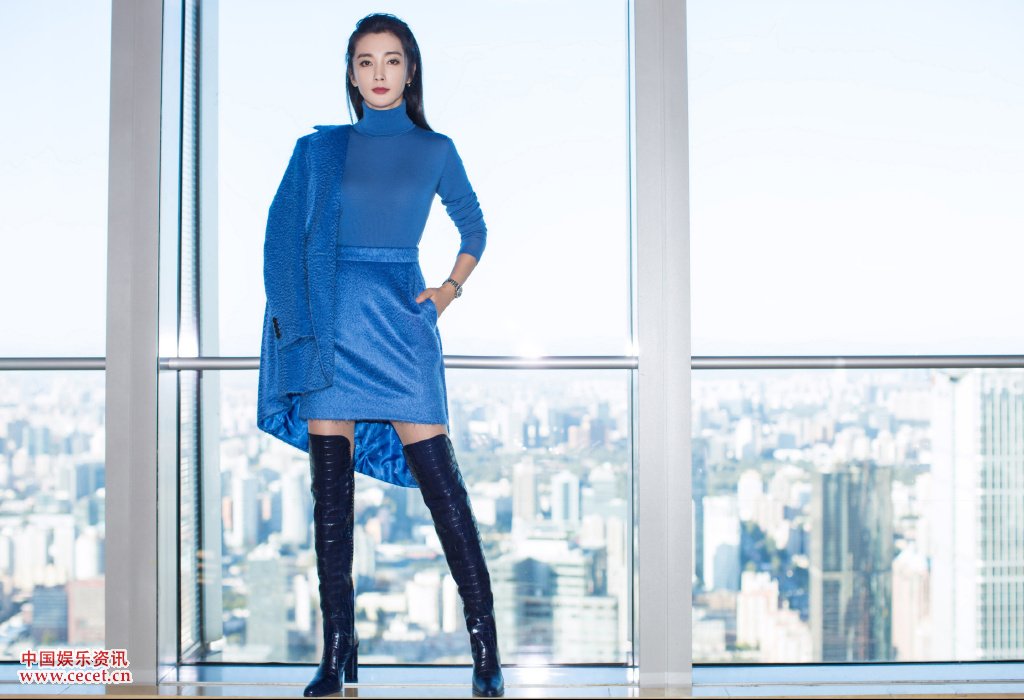 李冰冰藍色上衣配過(guò)膝靴自信從容釋放成熟韻味