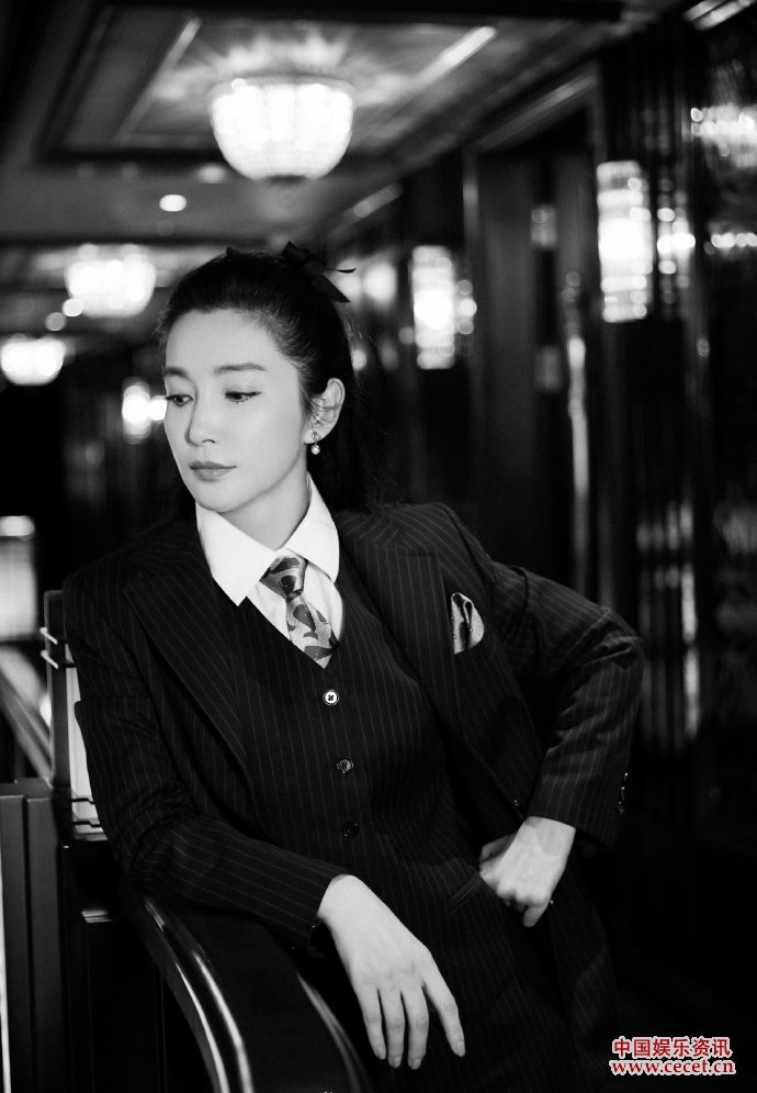 李冰冰復古風(fēng)摩登酷照 黑色條紋西裝扮舞會(huì )達人