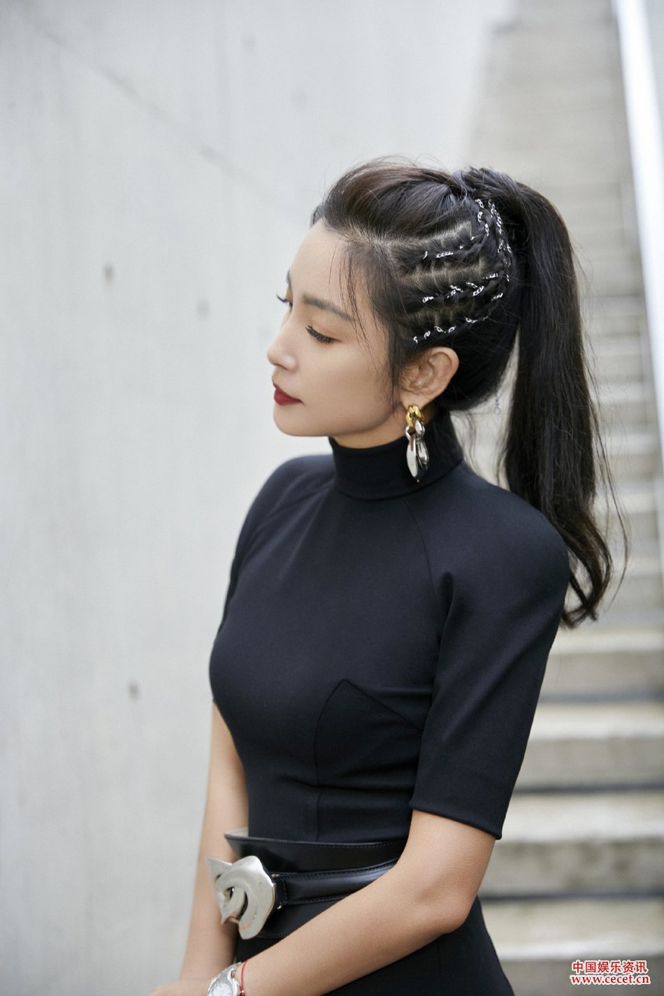 李冰冰身著(zhù)黑色修身長(cháng)裙 盡顯復古柔美風(fēng)情