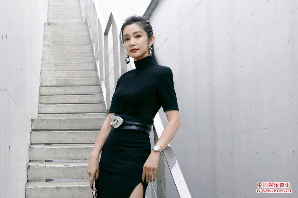 李冰冰身著(zhù)黑色修身長(cháng)裙 盡顯復古柔美風(fēng)情