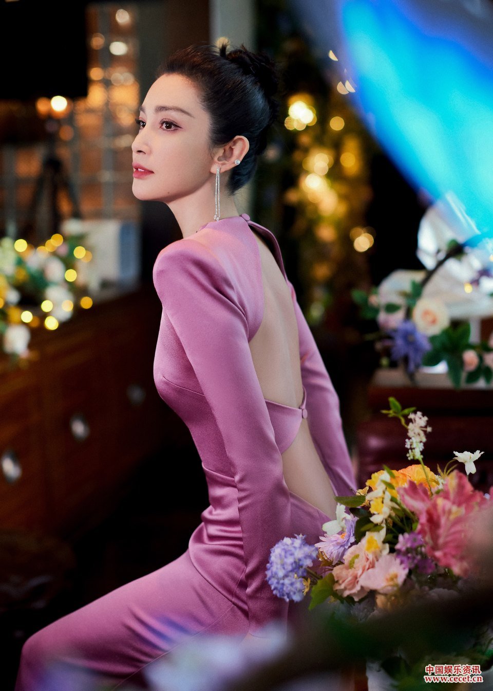 李冰冰伴花而立自成光 自信從容恰似盛放之景