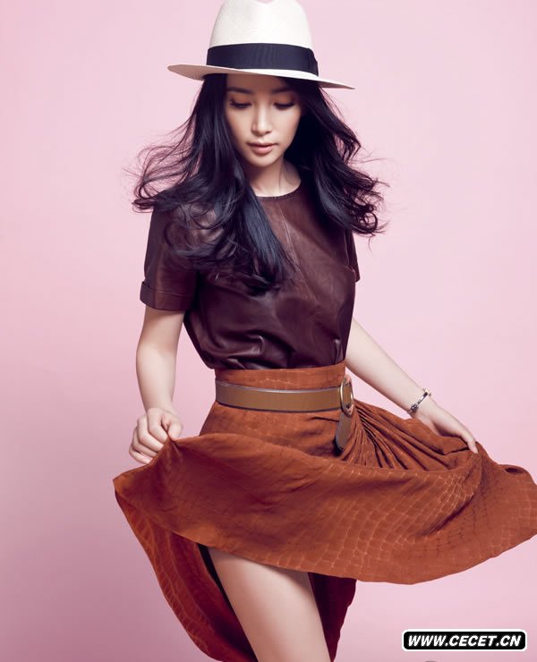 李冰冰甜美造型登封面 戴爵士帽卷發(fā)嬌媚