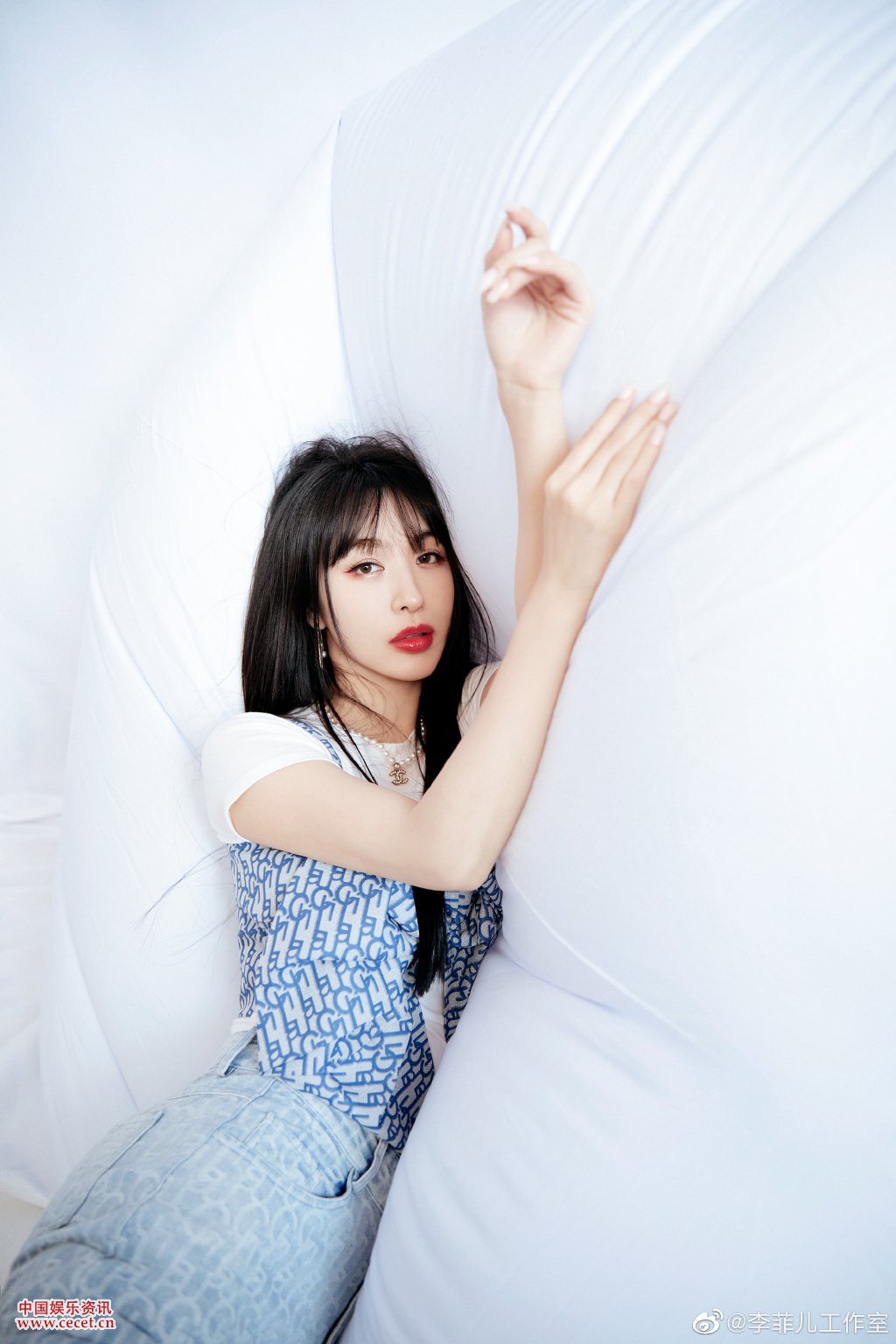 李菲兒牛仔喇叭褲造型 胸前蝴蝶結超級可愛(ài)