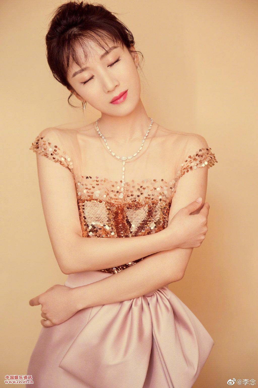 李念金色大廳優(yōu)雅寫(xiě)真 對鏡燦笑秀鎖骨美肩