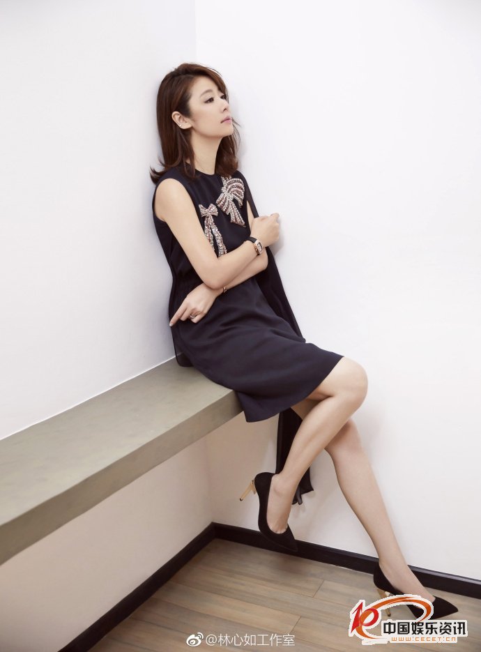 林心如無(wú)袖連衣裙美照 妝容淡雅精致女人味