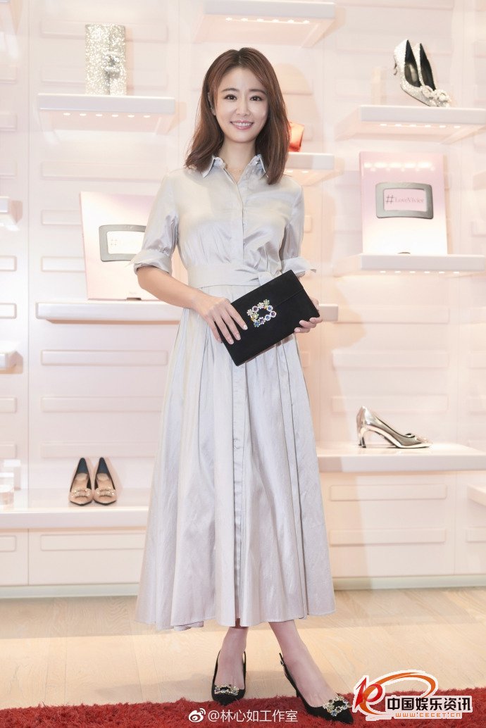 林心如身穿淺色連衣裙簡(jiǎn)約大氣甜美十足