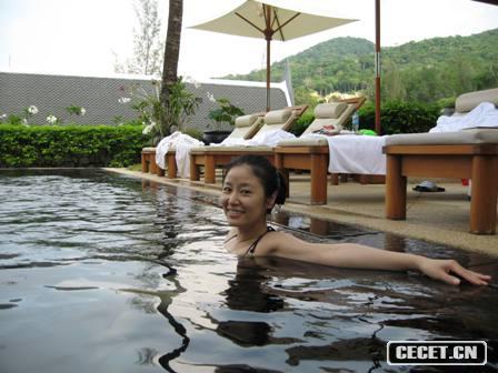 林心如孤身一人旅游 泡溫泉自拍泳裝照
