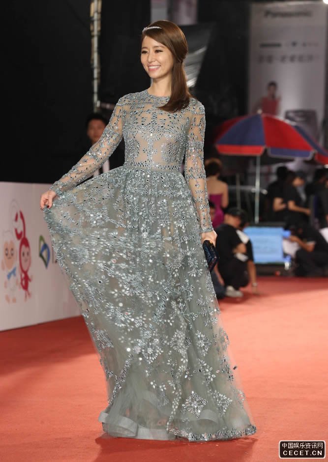 林心如臺灣金鐘獎紅毯 透視鏤空長(cháng)裙拼性感