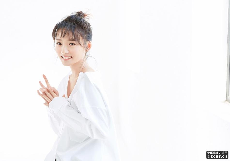 林源純白背景寫(xiě)真大片 香肩鎖骨盡顯活潑本色