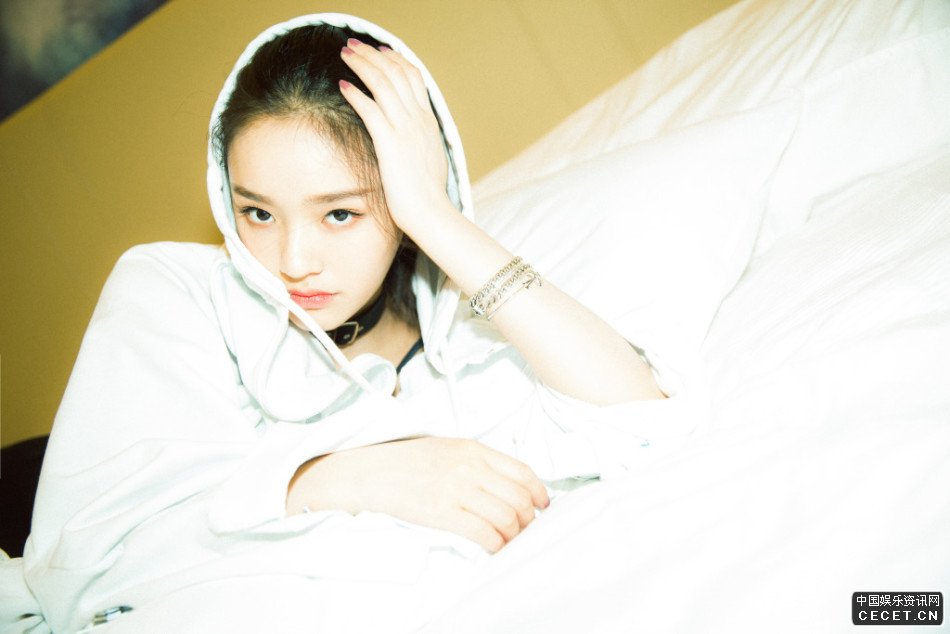林允臥床撩衣露肩照片 白衣清純不失魅惑