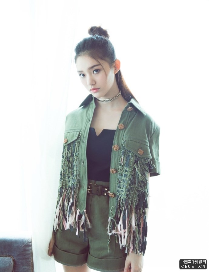 林允綠色流蘇外套亮相 同色系短褲展露美腿
