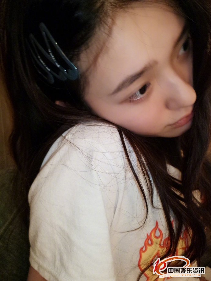 林允白色T恤素顏上鏡 表情搞怪可愛(ài)少女感十足