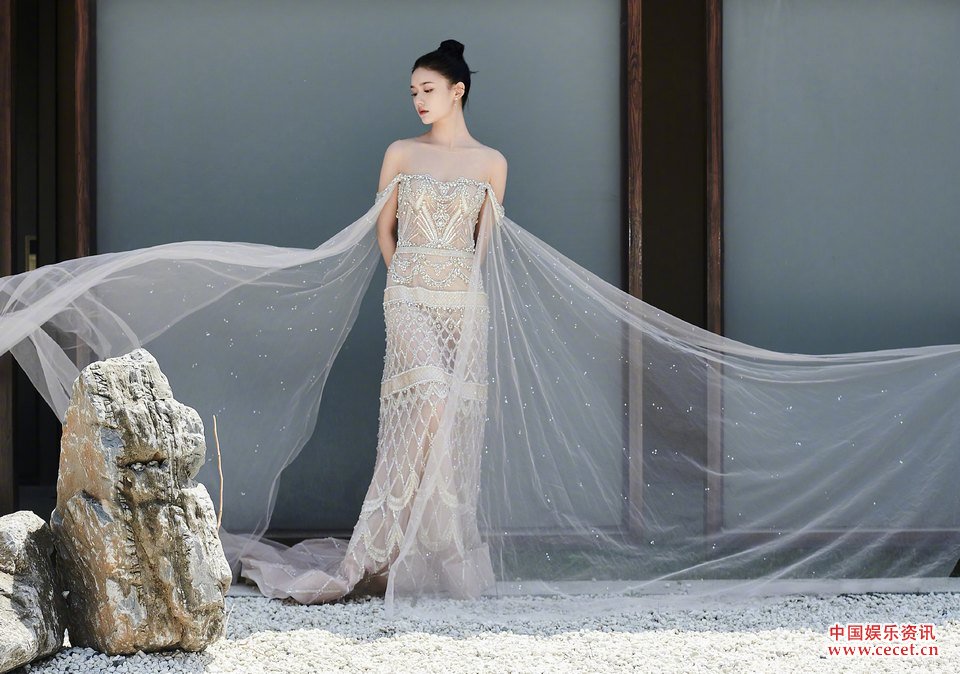 林允薄紗裹身嬌嫩欲滴 精致面容更添玲瓏之感