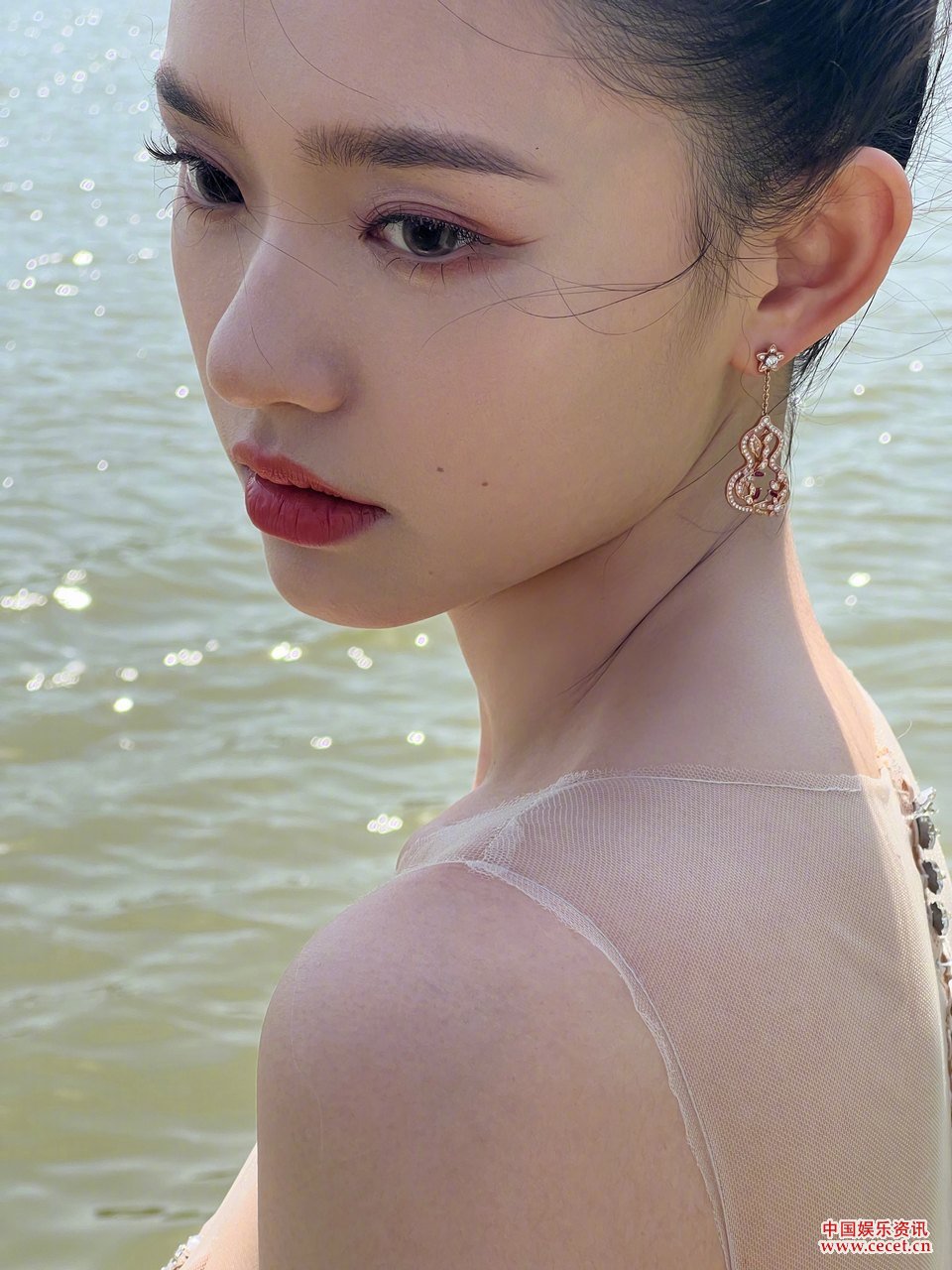 林允薄紗裹身嬌嫩欲滴 精致面容更添玲瓏之感