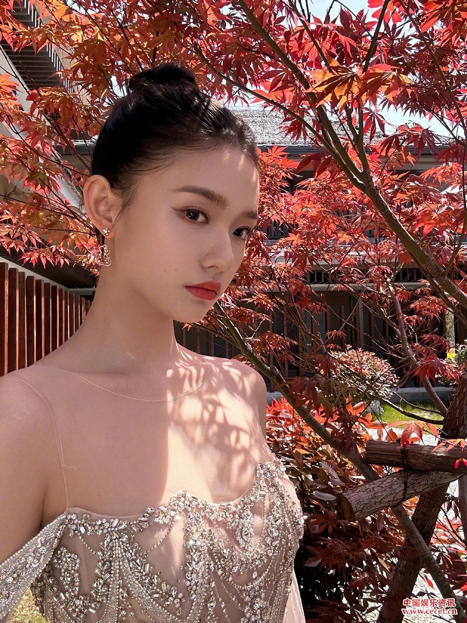 林允薄紗裹身嬌嫩欲滴 精致面容更添玲瓏之感