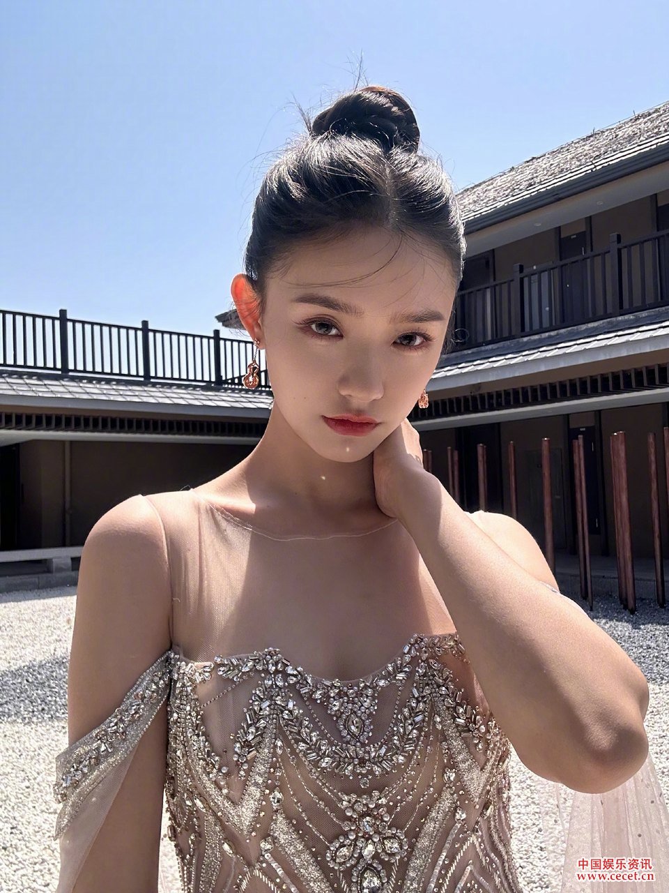 林允薄紗裹身嬌嫩欲滴 精致面容更添玲瓏之感