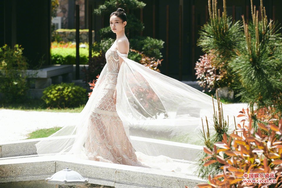 林允薄紗裹身嬌嫩欲滴 精致面容更添玲瓏之感