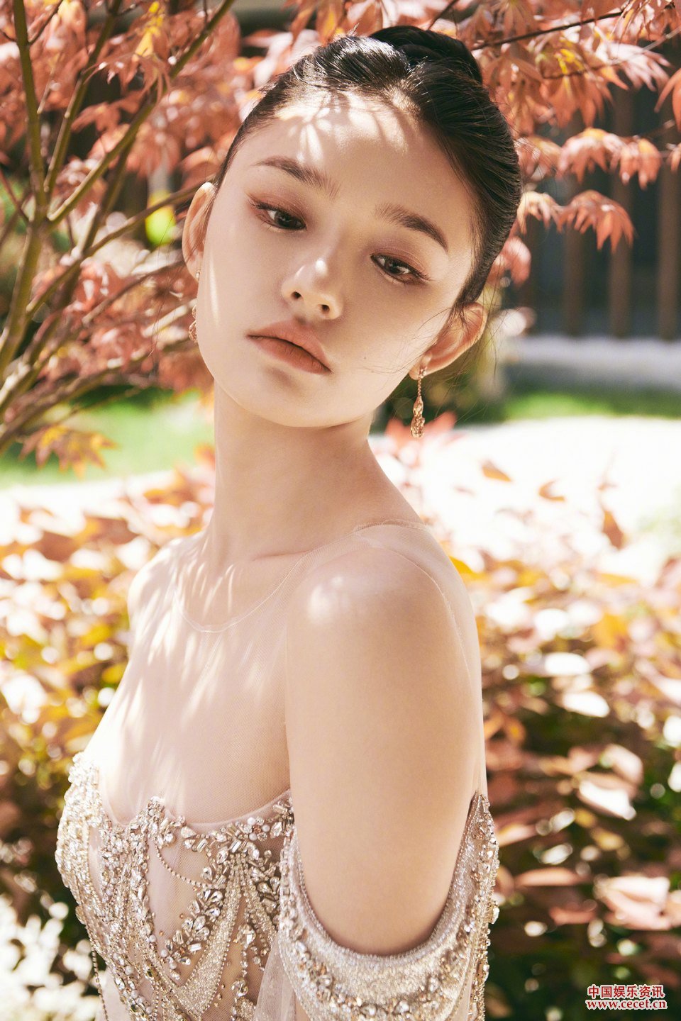 林允薄紗裹身嬌嫩欲滴 精致面容更添玲瓏之感