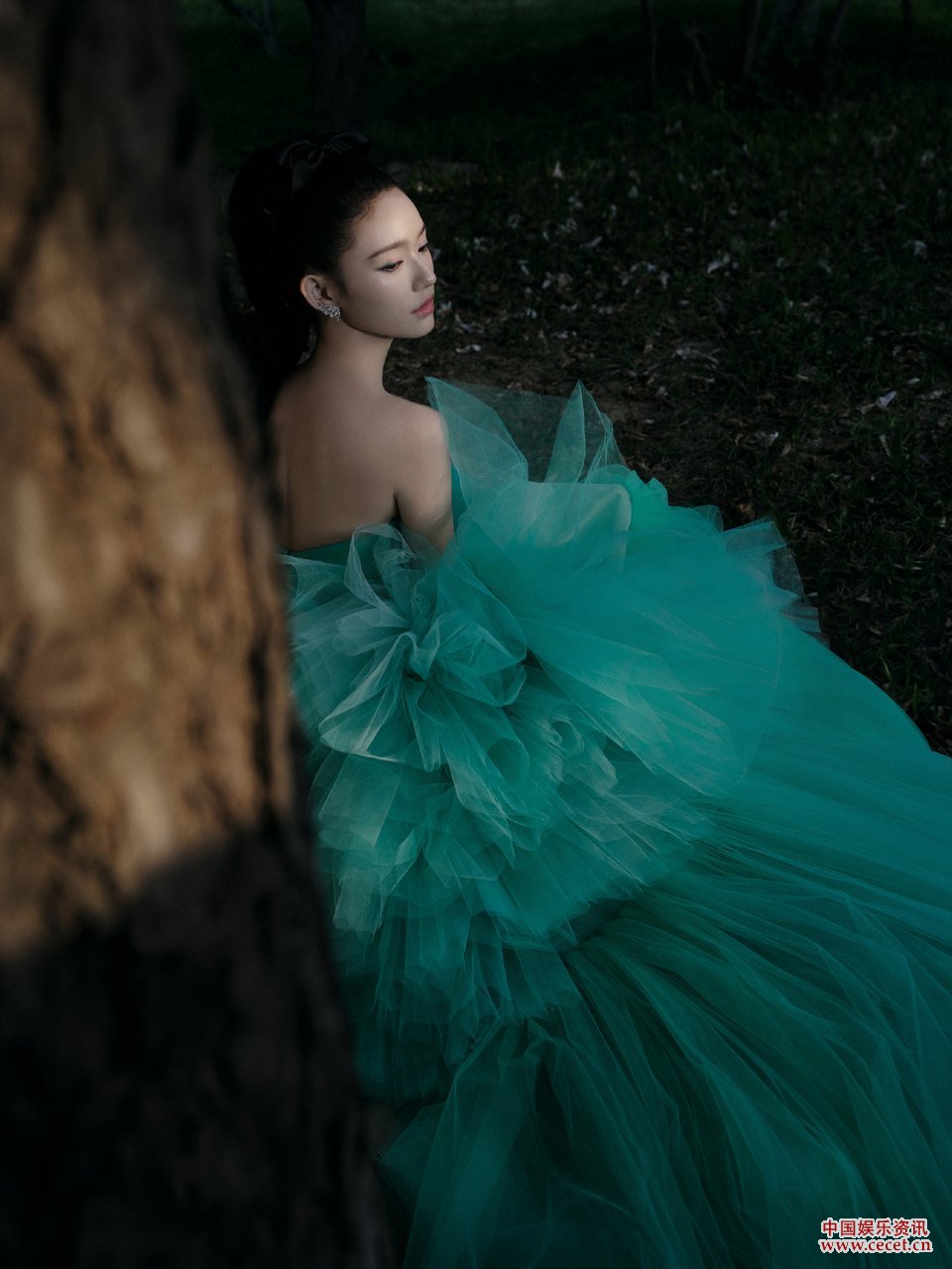 林允身著(zhù)薄荷蛋糕裙 每一抹綠意皆向上生長(cháng)