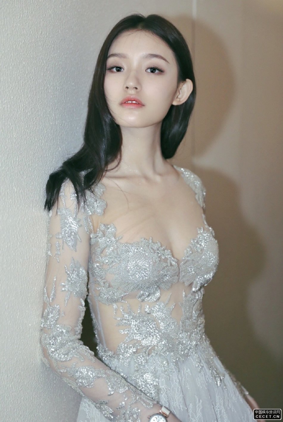 林允低胸蕾絲裙禮服照 前面秀美胸后面曬美背