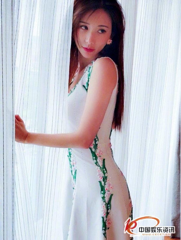 林志玲小洋裝酥胸微露貼著(zhù)落地窗的美照