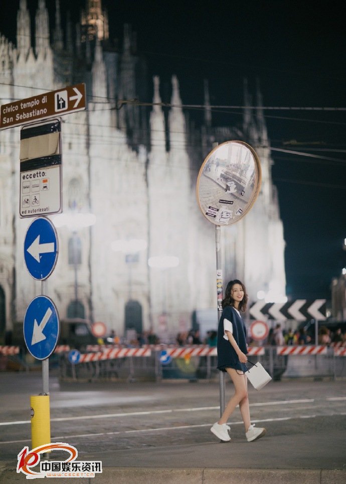 李沁短裙秀出修長(cháng)美腿 在街頭漫步十分俏皮