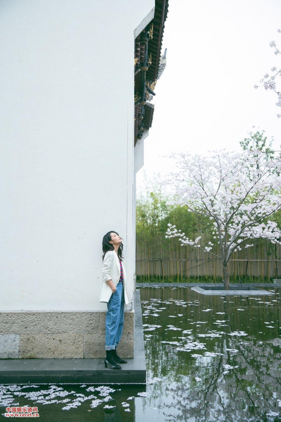 李沁在櫻花樹(shù)下的美照 中性裝扮干練帥氣