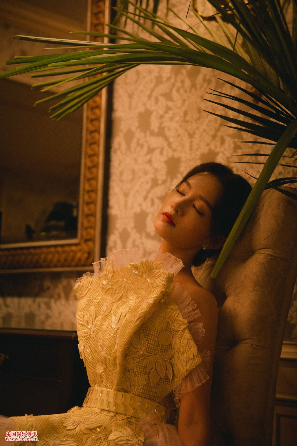 李沁黃裙輕紗足間閃耀 秋意正濃沁人心脾