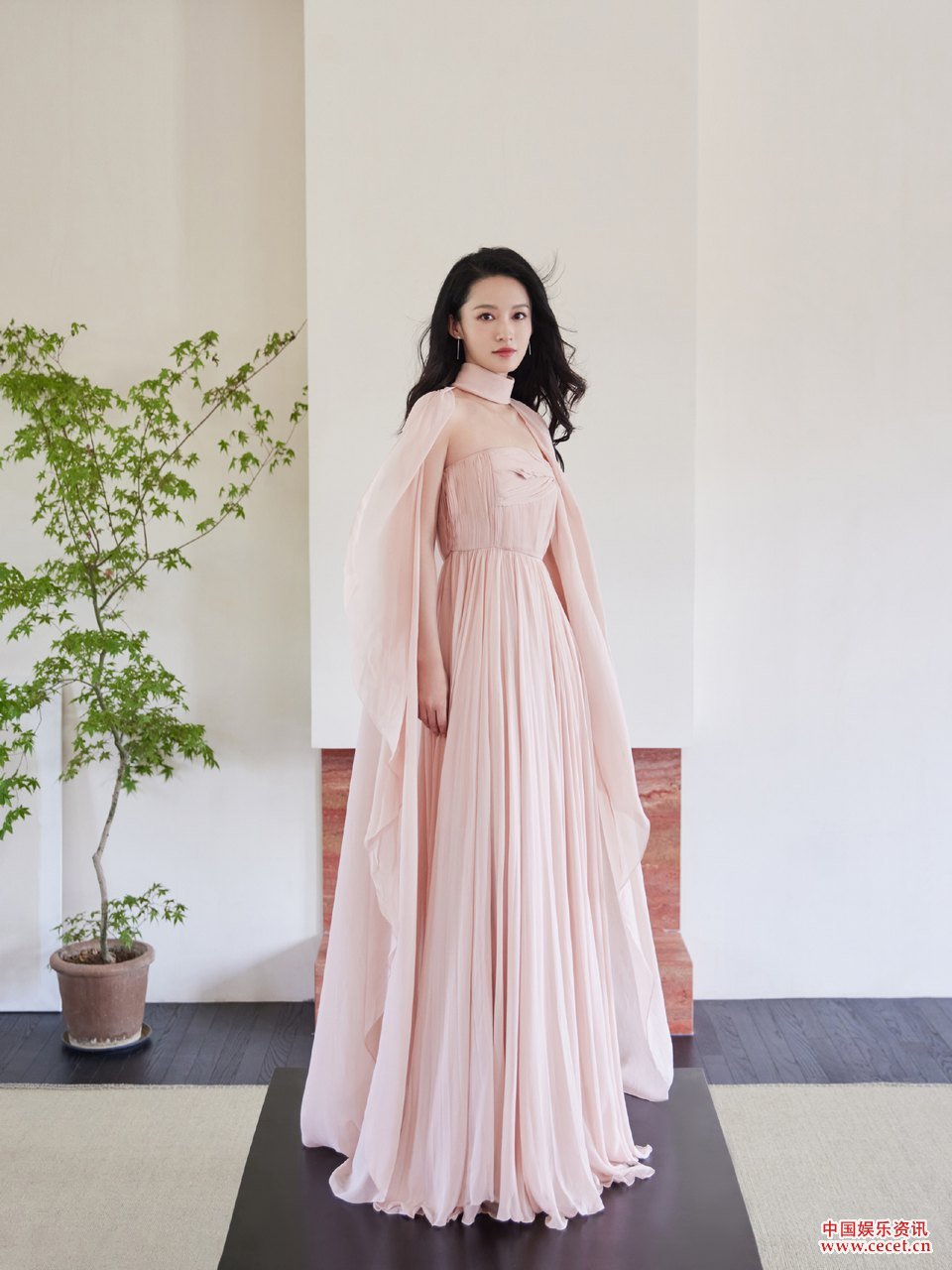 李沁粉色紗裙輕盈亮相 循光漫步雕塑共舞翩然