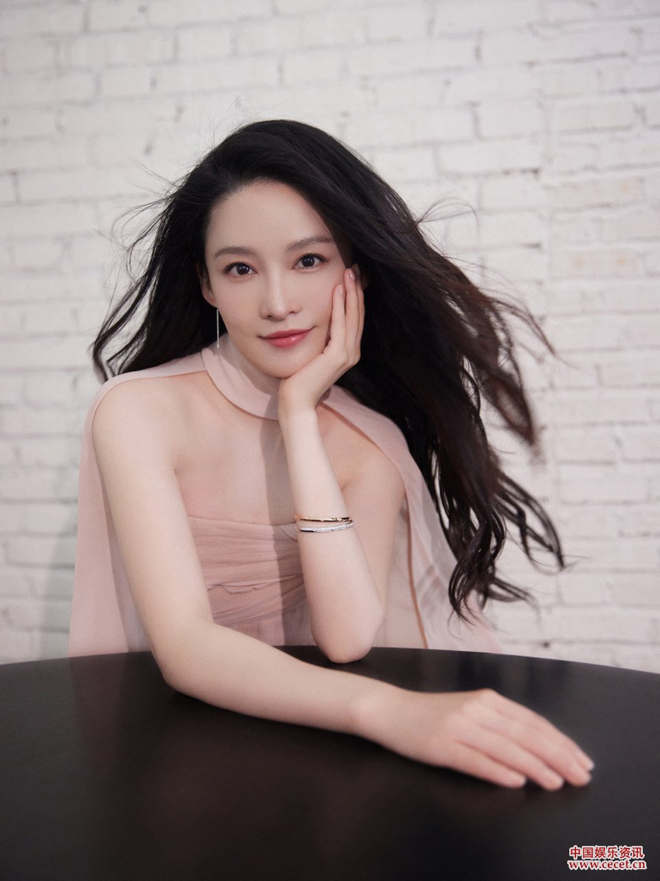 李沁粉色紗裙輕盈亮相 循光漫步雕塑共舞翩然