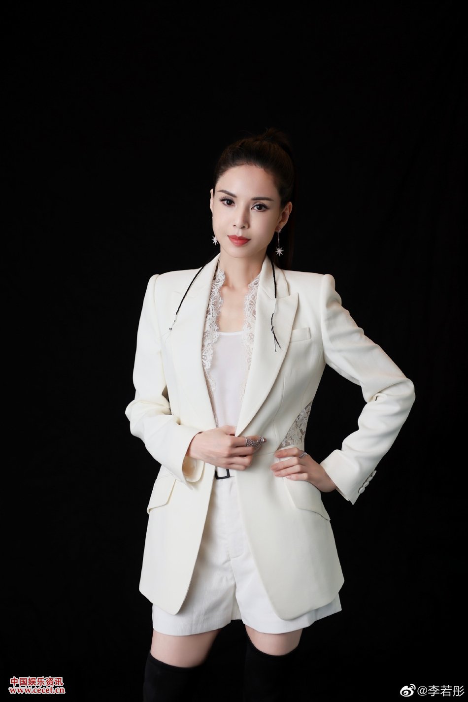 李若彤白色西裝搭配蕾絲內襯 扎高馬尾干練優(yōu)雅