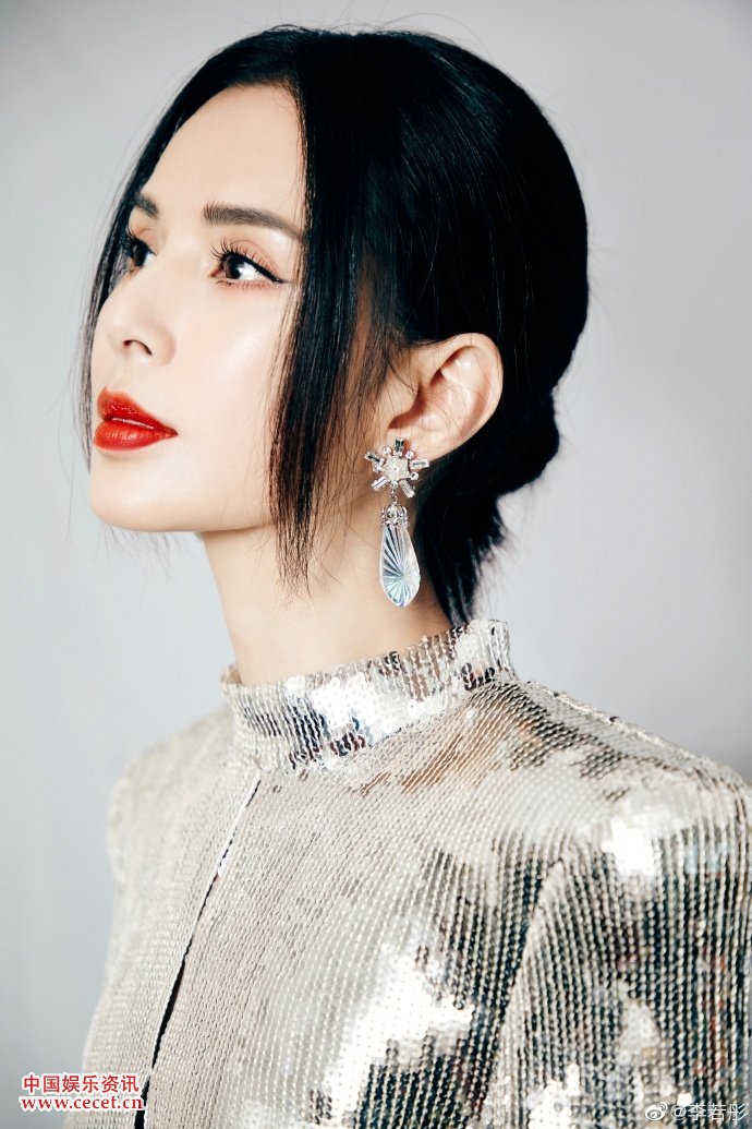 李若彤銀色亮片流蘇連衣裙光影婆娑時(shí)尚又有氣質(zhì)