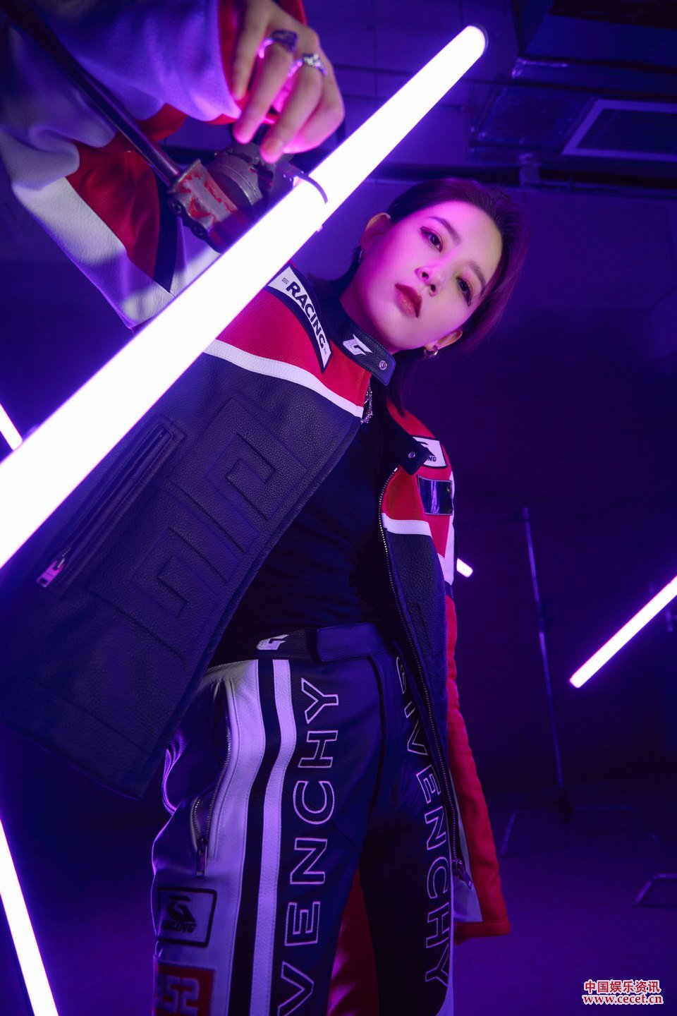 李斯丹妮身著(zhù)帥氣的機車(chē)服自由自在的灑脫